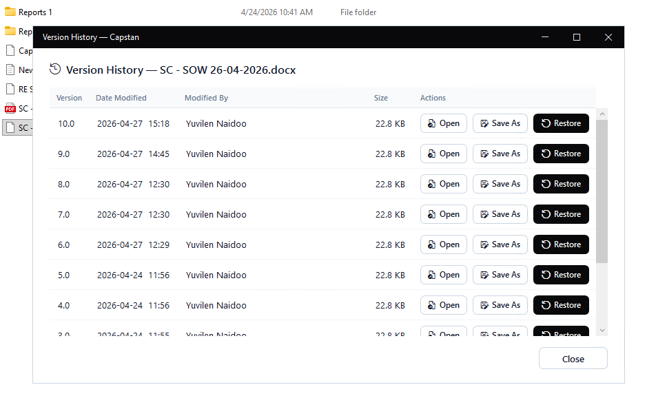 Accidental overwrites happen daily. Give your users the power to view document history and restore previous versions directly from File Explorer. Empower your team with self-service recovery and drastically reduce routine IT helpdesk tickets.